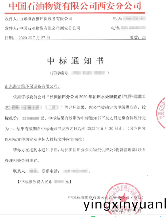 海(hai)吉雅(ya)環(huan)保中(zhong)標長(zhang)慶油田(tian)分(fen)公司2020年油(you)田水(shui)處(chu)理裝寘(zhi)採購(gou)
